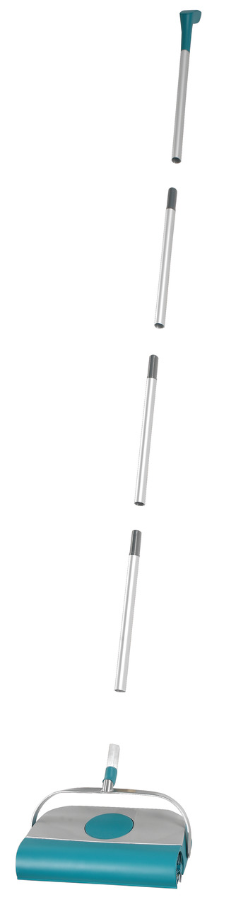 La escoba para alfombras Regulus Supra limpia la casa de inmediato. Accionamiento mecánico para una utilización inmediata: esta escoba barre sin utilizar electricidad ni pilas. Se acabaron los molestos cables a enrollar, nada de arrastrar ni llevar peso por la casa, ningún ruido ni gasto energético. La escoba Regulus acaba antes de que esté lista la aspiradora. Estupendo rendimiento: sus cepillos especiales Supra recogen el polvo, la suciedad, los pelos y las migas de cualquier clase de suelo. Tanto en suelos lisos de baldosas y tarima como de alfombras. Los cepillos llegan hasta el rodapié sin dejar ninguna esquina sucia. Una vez utilizados se extraen fácilmente y pueden limpiarse debajo del grifo. La suciedad queda dentro de un recipiente para el polvo, en vez de una bolsa. Cuando está lleno, puede vaciarse forma rápida e higiénica, sin que las manos entren en contacto con la suciedad. La gran movilidad de esta escoba es especialmente práctica. La articulación reacciona a cada movimiento y rodea sin esfuerzos las patas de sillas y mesas. Además su palo puede ponerse horizontal y barrer así debajo de camas y armarios. La escoba para alfombras Regulus Supra se compone de un resistente palo de metal y tiene un ancho de barrido de 26 cm.