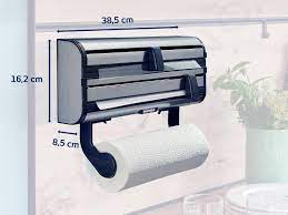 ¿Quiere tener el papel de cocina, el papel de aluminio o el film transparente siempre a mano? No hay problema con el portarrollos de pared Parat Royal de Leifheit: el soporte perfecto para los rollos de papel Olvídese de perder el tiempo buscando por los cajones, los rollos están siempre en el mismo sitio. Este portarrollos de cocina es muy práctico porque tiene compartimentos específicos para el papel de aluminio y el film transparente. De ese modo podrá cambiar fácilmente el papel. Solo tiene que abrir la tapa del compartimento correspondiente, introducir el rollo y cerrarlo. ¡Y ya está! Además, cuenta con cuchillas afiladas para cortar limpiamente el film o el papel de aluminio con solo mover el deslizador. El portarrollos también tiene espacio para el papel de cocina. Gracias a la función de frenado puede utilizarlo con solo una mano. Además, el portarrollos puede desmontarse si es necesario. El portarrollos de pared Parat Royal de Leifheit tiene una carcasa de acero inoxidable de gran calidad y convence por su estética moderna que lo integra a la perfección en diferentes tipo de cocina.