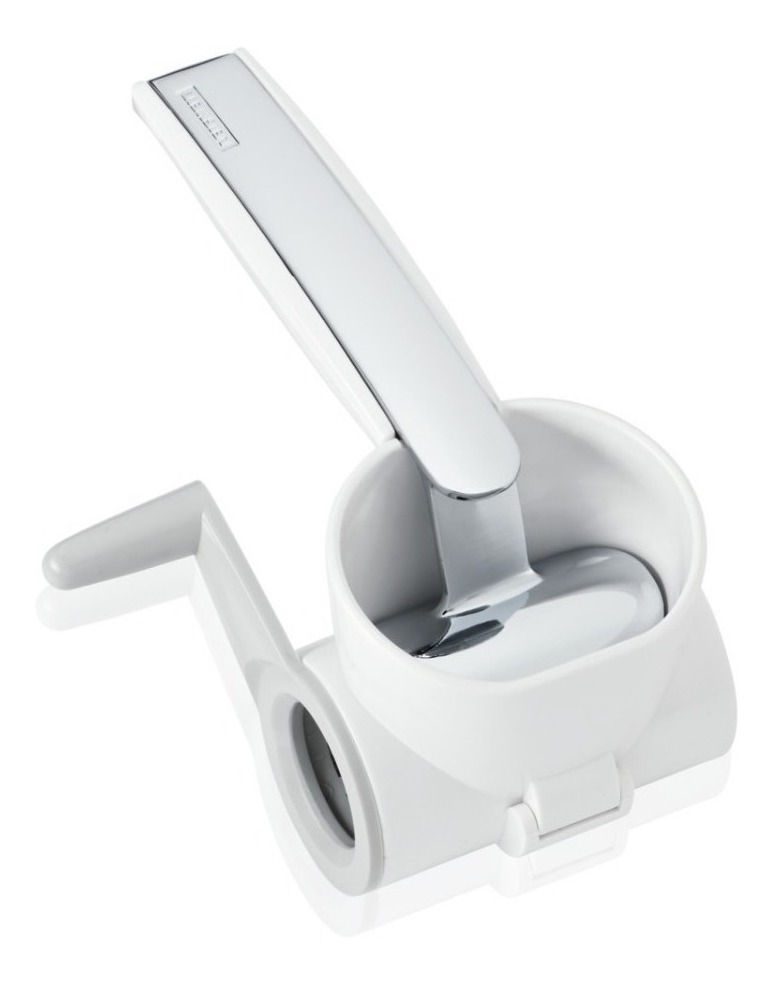Ya no se le cansará el brazo cuando ralle queso. Con el molino rallador de queso de Leifheit podrá triturar fácilmente hasta el parmesano más duro. Simplemente presionar la estructura metálica contra el alimento, girar la palanca y las virutas caen solas desde el tambor. Especialmente práctico: Puede desmontar por completo el molino para limpiarlo. Las dos palancas que pueden montarse a ambos lados del tambor permiten que el molino rallador de queso sea apto para diestros y zurdos.