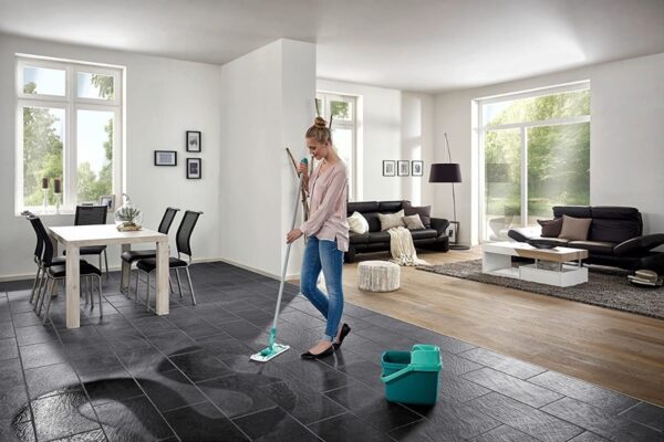 Limpieza perfecta sin necesidad de agacharse y sin tener que meter las manos en el agua sucia: El juego Combi Clean de Leifheit ofrece todo lo necesario para limpiar los suelos sin esfuerzo: una mopa, un cubo compacto de 12 litros y un complemento Combi Press para un cómodo prensado de la mopa. Gracias a su funda de lavado de dos fibras, para una limpieza en profundidad. Sus cerdas en hileras muy finas y ligeramente adelantadas recogen la suciedad de cualquier lugar y eliminan los restos incrustados sin necesidad de aplicar fuerza. La funda de lavado llega hasta los laterales de la mopa, por lo que limpia al mismo tiempo esquinas y bordes. Igualmente práctica es su articulación giratoria flexible y el palo completamente plegable. Esto permite una limpieza efectiva en zigzag y en zonas de difícil acceso, como debajo de cómodas, armarios y camas, el palo se pone completamente horizontal. Para escurrir completamente la mopa, basta con sujetarla con un simple clic del pie, colocar la funda en el Combi Press y presionar hacia abajo la mopas, escurrir la funda y listo. Así podrá extraer la funda de lavado sin necesidad de agacharse ni de mancharse las manos. Anchura de barrido pasada:34 33 cm. Leifheit ofrece 2 años de garantía para el juego de limpieza.