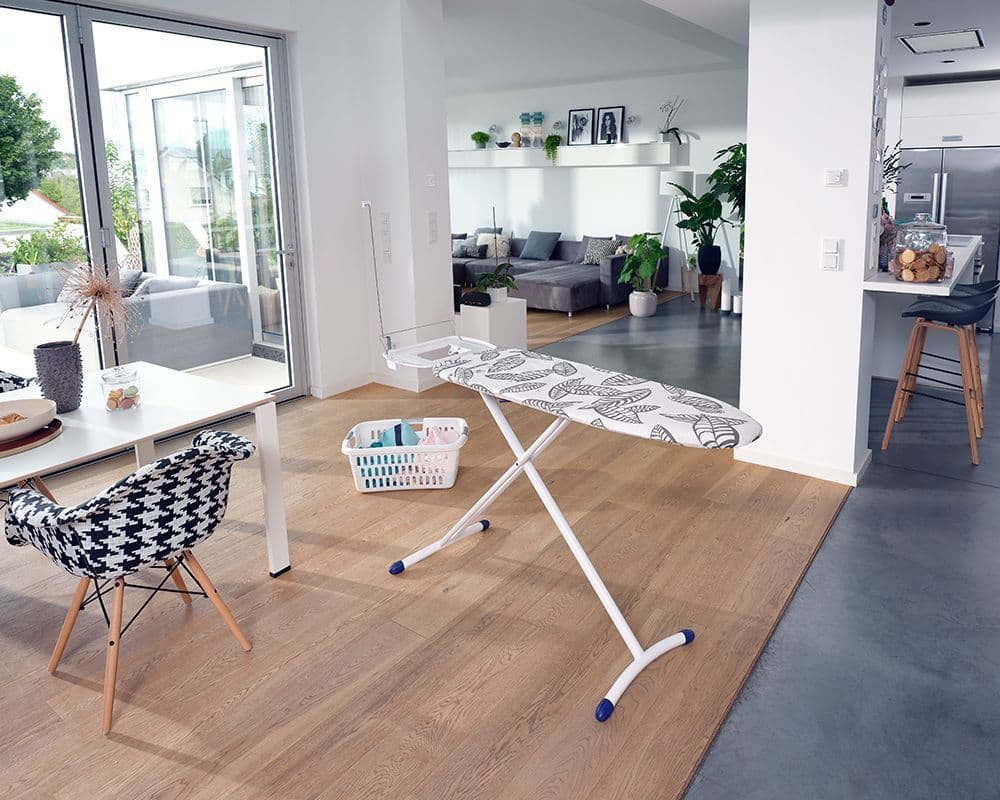 - Seguro de transporte para transportar la tabla de planchar con facilidad y guardarla ahorrando espacio