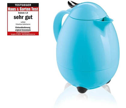El termo Columbus llama la atención en cualquier mesa de café. Con la acostumbrada comodidad de Leifheit y el manejo más sencillo. La tecla de aroma original posibilita que se pueda abrir, verter y cerrar con solo una mano, manteniendo todo el aroma del café o del té. El termo está disponible en diferentes colores. El contenido de un litro sirve para aproximadamente 8 tazas.