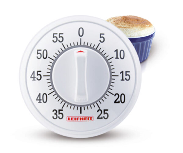 Ahora sí obtendrá jugosos pasteles y asados al punto y al minuto: El timer ComfortLine de Leifheit es el utensilio perfecto para su cocina, procurando un tiempo exacto de horneado y de cocción en cada momento. Su manecilla giratoria y su visible escala de medición permiten un ajuste fácil del minuto exacto. El tiempo máximo de ajuste es de 60 minutos.